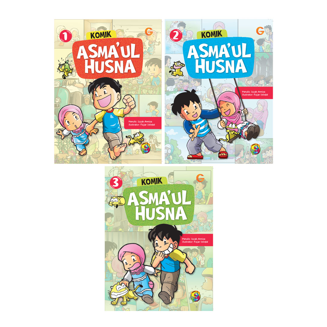 Komik anak Set Komik Asma’ul Husna menghadirkan cerita anak islami tentang kisah sehari-hari Alifa dan Kak Sabiq bersama orang tua dan teman-temannya mengenal Asma’ul Husna dan mengamalkannya dalam keseharian. Komik anak ini mengajarkan kebaikan yang terkandung dalam Asma’ul Husna untuk diterapkan pada anak.